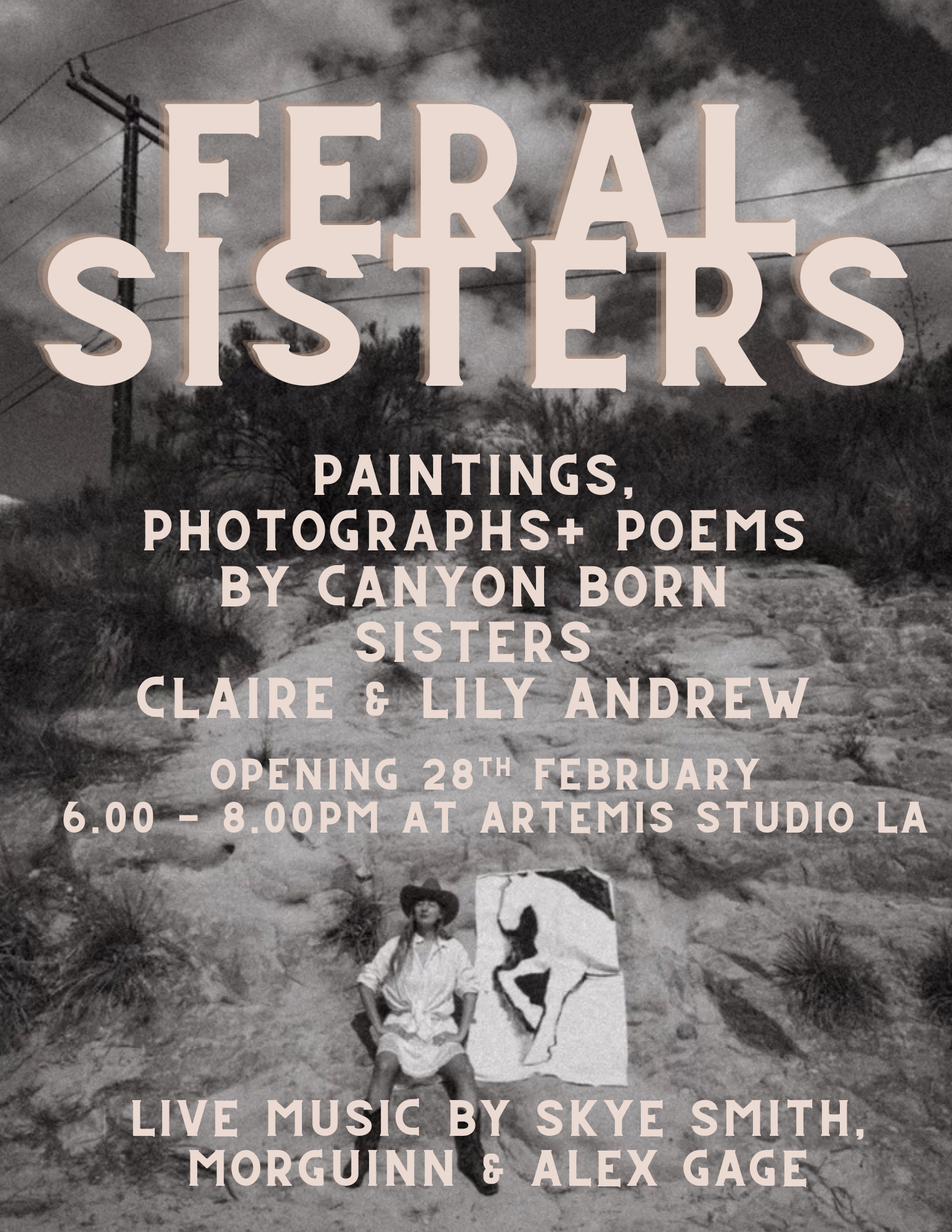 Join us for the inaugral opening recetion in our new space - FERAL SISTERS, a collection of paintings, poetry and photography by Canyon born and raises sisters Claire and Lily Andrew.